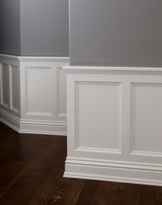 Raised-panel wainscoting: The most traditional type of wainscoting, raised-panel wainscoting requires a craftsman to bevel the edges of each individual panel before adding wood trim on top of the raised panels.